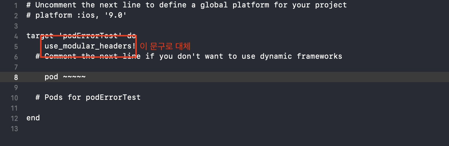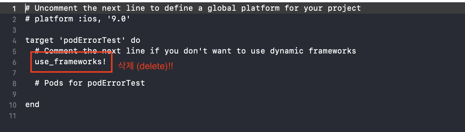 해결 방법: pod file을 연 후 use_frameworks! <- 이부분을 지우고 use_modular_headers!<-이걸로 대체!